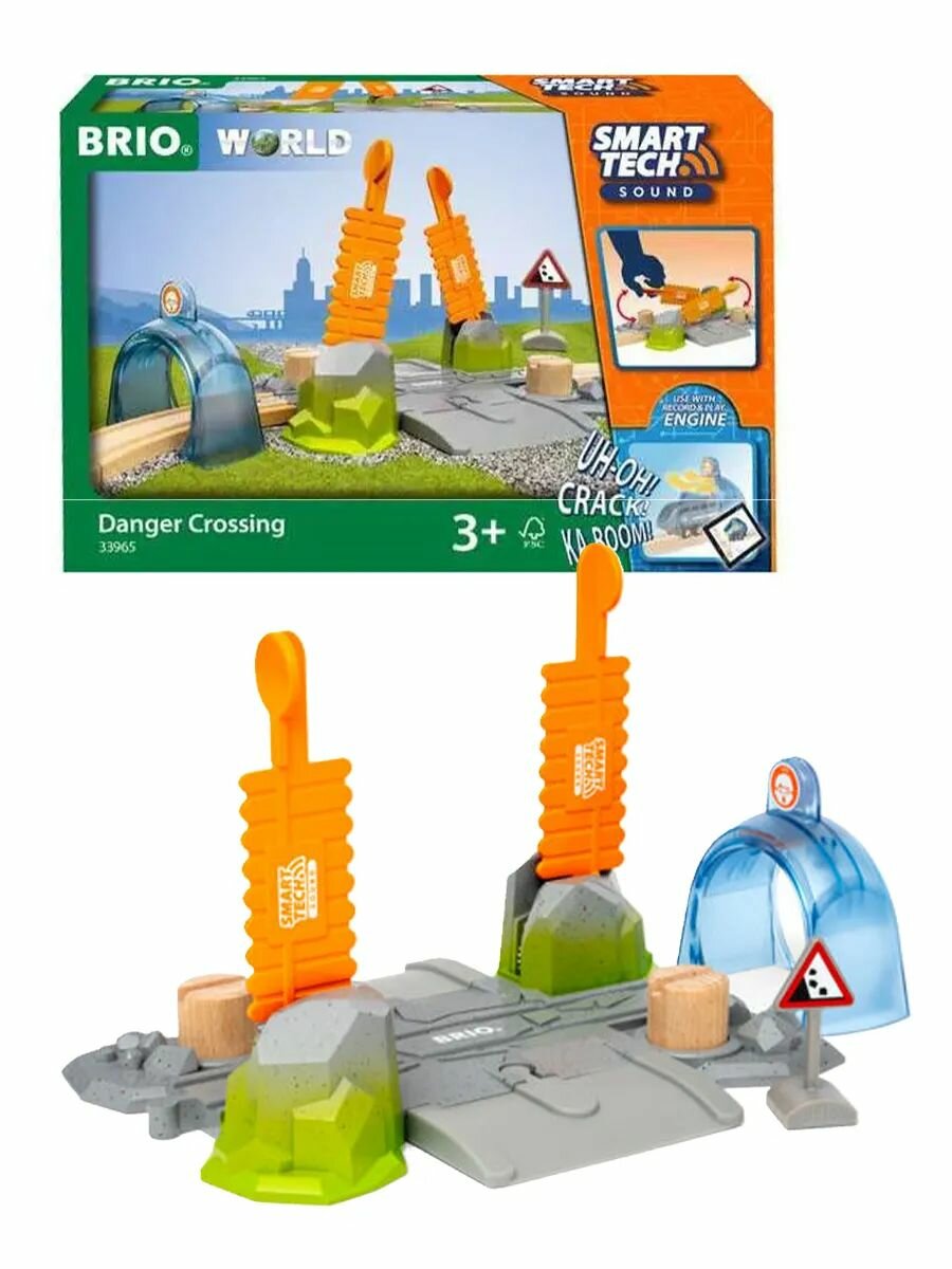 Переезд с интерактивным тоннелем и шлагбаумом BRIO для железной дороги – это премиальная детская игрушка, выполненная в соответствии с высокими стандартами шведской компании Брио АБ и совместимая с известными брендами. Поднимайте и опускайте защитные шлагбаумы на этом горном переезде, чтобы автоматически останавливать и запускать поезд с технологией Smart Tech Sound (не входит в комплект) или звуки обвалов и землетрясений.