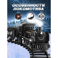 Железная дорога с поездом на батарейках и вагонами со светом, звуком и паром