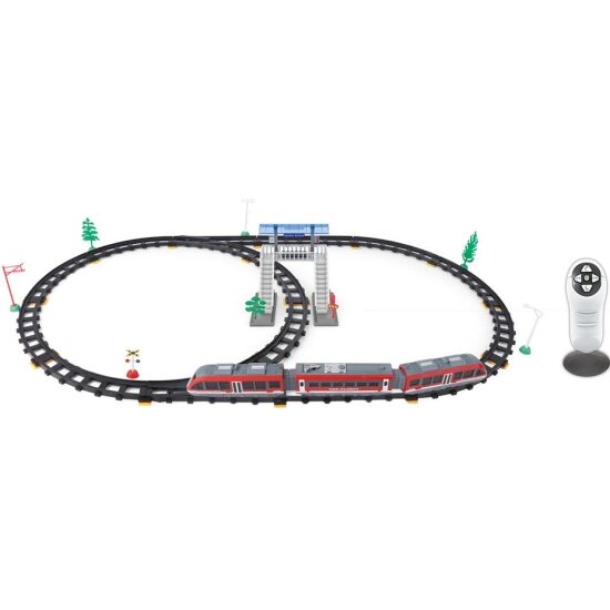 Железная дорога с поездом на пульте управления и вагонами со светом, звуком и паром
