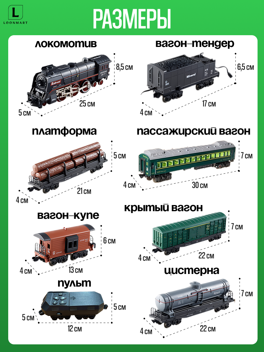 Мы представляем вам очень качественную железную дорогу, которая станет настоящим раритетом в вашей коллекции. Этот набор включает в себя не только поезд, но и специальные эффекты, которые делают игрушку еще более захватывающей. Железная дорога поставляется в отличной яркой упаковке, которая сразу привлекает внимание. Это идеальный подарок для взрослых и детей, ведь она способна привнести радость и воспоминания о детстве. Раритетный поезд выглядит очень реалистично, пар идет из трубы и из-под передних колес, создавая иллюзию настоящего паровоза. При включении дороги раздаётся сигнал о начале движения, пар начинает появляться, а поезд медленно разгоняется. Это создает атмосферу настоящего путешествия на железной дороге. Важно отметить, что пар начинает появляться постепенно, по мере разогрева нагревательного элемента. Никакого запаха пластика от пара нет, это проверено! Эта игрушка является премиального качества, которое вы оцените с первого взгляда. Она выполнена из прочного пластика, что делает ее долговечной и надежной. Железная дорога с поездом - это мечта многих мальчишек, которые мечтают о приключениях на рельсах. В нашем ассортименте представлены несколько вариантов детской железной дороги, чтобы каждый мог выбрать набор, который соответствует его предпочтениям и желаниям. Большая железная дорога отличается от маленькой количеством вагонов и рельсового полотна, что позволяет создать более масштабные и интересные маршруты.