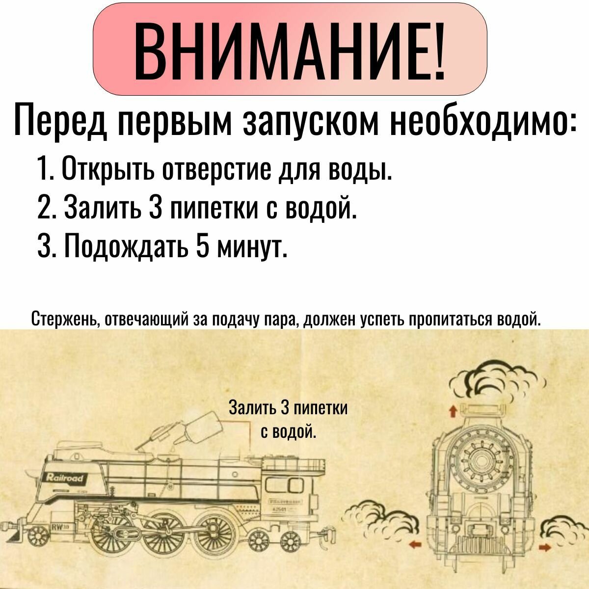 Мы представляем вам очень качественную железную дорогу, которая станет настоящим раритетом в вашей коллекции. Этот набор включает в себя не только поезд, но и специальные эффекты, которые делают игрушку еще более захватывающей. Железная дорога поставляется в отличной яркой упаковке, которая сразу привлекает внимание. Это идеальный подарок для взрослых и детей, ведь она способна привнести радость и воспоминания о детстве. Раритетный поезд выглядит очень реалистично, пар идет из трубы и из-под передних колес, создавая иллюзию настоящего паровоза. При включении дороги раздаётся сигнал о начале движения, пар начинает появляться, а поезд медленно разгоняется. Это создает атмосферу настоящего путешествия на железной дороге. Важно отметить, что пар начинает появляться постепенно, по мере разогрева нагревательного элемента. Никакого запаха пластика от пара нет, это проверено! Эта игрушка является премиального качества, которое вы оцените с первого взгляда. Она выполнена из прочного пластика, что делает ее долговечной и надежной. Железная дорога с поездом - это мечта многих мальчишек, которые мечтают о приключениях на рельсах. В нашем ассортименте представлены несколько вариантов детской железной дороги, чтобы каждый мог выбрать набор, который соответствует его предпочтениям и желаниям. Большая железная дорога отличается от маленькой количеством вагонов и рельсового полотна, что позволяет создать более масштабные и интересные маршруты.