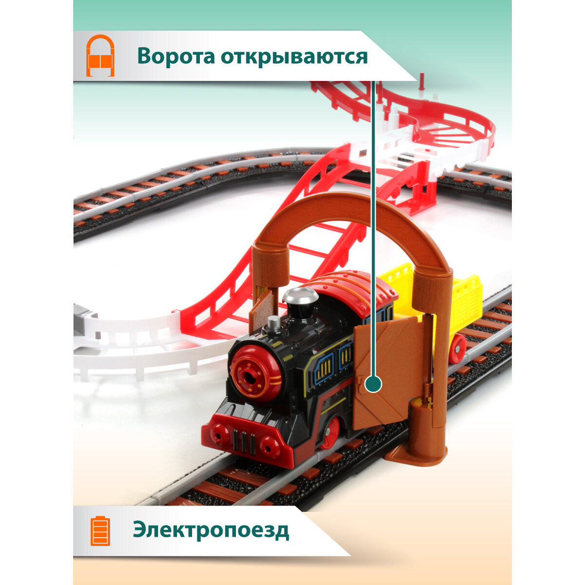Большая деревянная дорога с электрическим поездом, на батарейке, 95 деталей