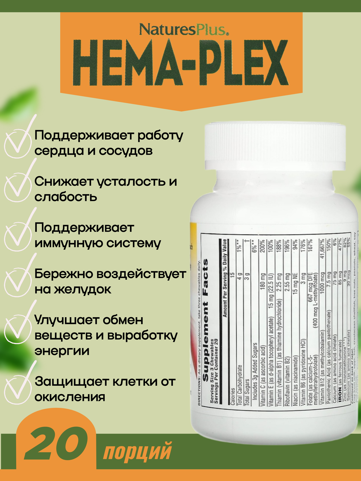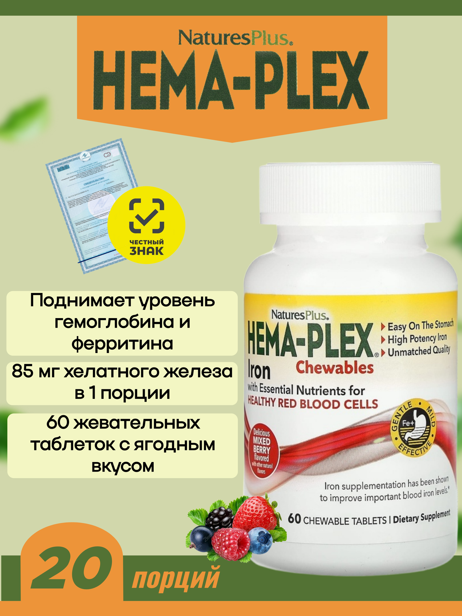 Купить Железо (85мг) + Витамин С, Natures Plus Hema-Plex, 60 жевательных таблеток с доставкой по всей России. Железо (85мг) + Витамин С, Natures Plus Hema-Plex, 60 жевательных таблеток: сравнение цен, характеристики, фото, актуальное наличие и цены.