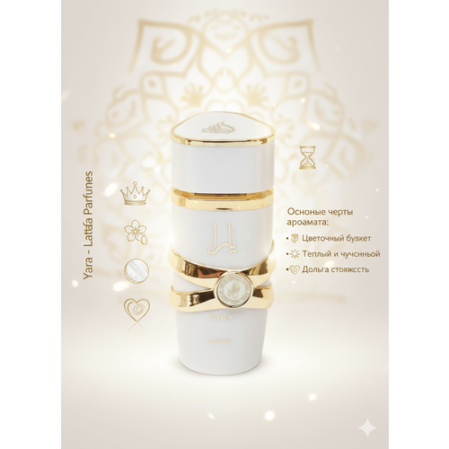 Погрузитесь в мир восточной роскоши с арабскими духами Lattafa Yara. Этот изысканный парфюм сочетает в себе нежность цветочных аккордов и сладость фруктовых нот, создавая неповторимый и запоминающийся аромат. Lattafa Yara – это идеальный выбор для тех, кто ценит элегантность и изысканность.