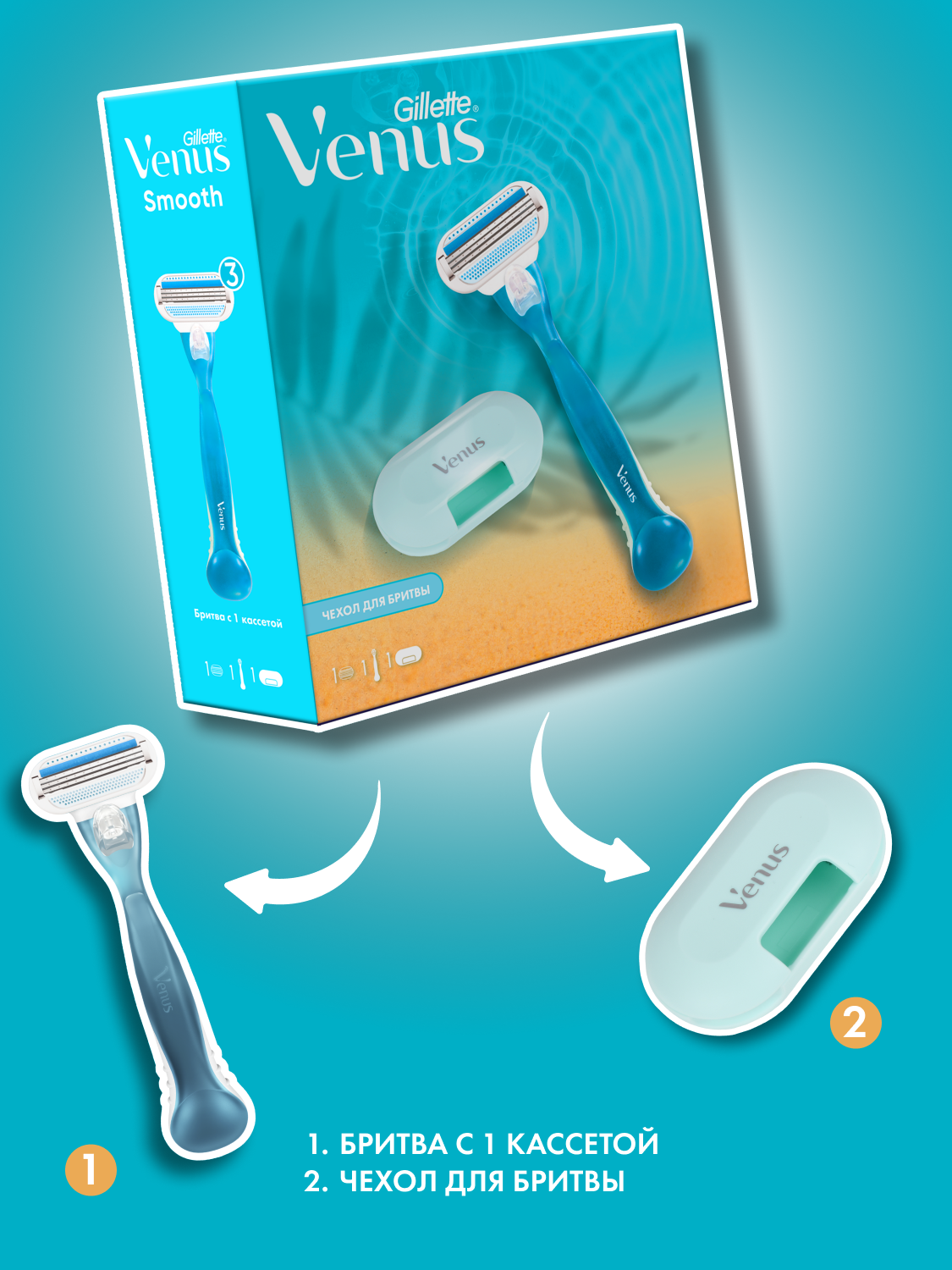 Женский подарочный набор Gillette Venus с бритвой Venus Smooth и чехлом для хранения бритвы: сравнение цен, характеристики, фото, актуальное наличие и цены.