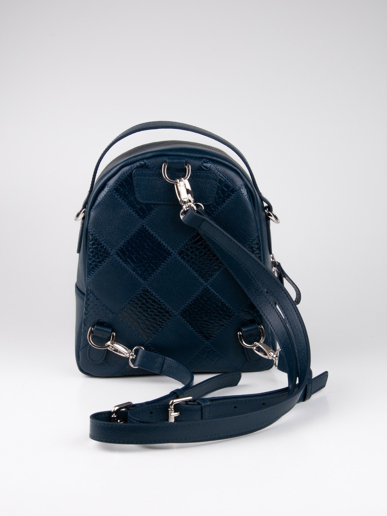 Снаружи рюкзак имеет карман на молнии спереди и карман на молнии сзади, что делает его еще более функциональным. Благодаря съемным регулируемым ремням, рюкзак можно носить как сумку через плечо или как рюкзак. Это позволяет выбрать наиболее удобный вариант в зависимости от ситуации.