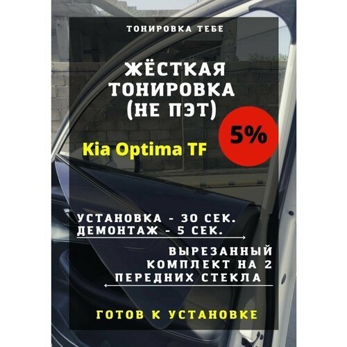 Жесткая съемная тонировка. Kia Optima TF Жмите на треугольник на картинке и смотрите видео обзор данной тонировки. Жесткая съемная многоразовая тонировка. Установка за 30 секунд. Многоразовое использование (более 500 повторных установок). Термостойкая основа производства США (рабочий диапазон температур от -40 до +40), сверху приклеена пленка Armolan HP onyx производства USA. По своим характеристикам уступает жесткой тонировке Premium из нашего ассортимента, так как является вариантом для ограниченного бюджета. В дневное время присутствует небольшая синева, в ночное время (по отзывам) затруднителен обзор боковых зеркал, слабый процент удержания тепла (до 15%), срок службы на выгорание напрямую зависит от количества солнечных дней (не менее 12 месяцев). Товар с признаками установки (примерки)/эксплуатации является невозвратным. Вы можете отказаться от товара при получении после осмотра в случае обнаружения дефектов или брака. В наличии более 1400 лекал. Если вы не нашли тонировку на свое авто, свяжитесь с нами. Для поиска: Тонировка, съемная тонировка, тонировка авто, многоразовая тонировка оптима тф