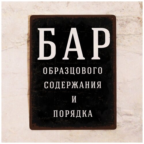 Купить Жестяная табличка Бар образцового порядка и содержания, металл, 20х30 см с доставкой по всей России. Жестяная табличка Бар образцового порядка и содержания, металл, 20х30 см: сравнение цен, характеристики, фото, актуальное наличие и цены.