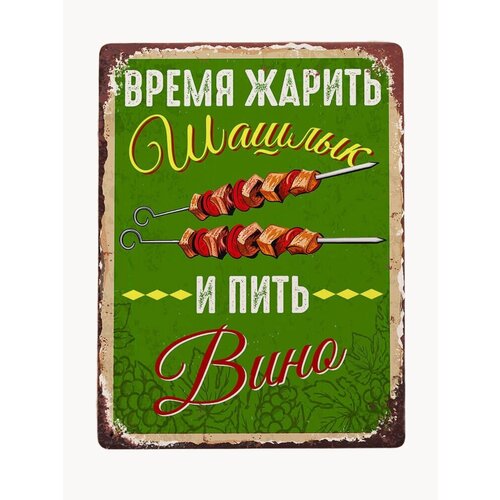 Металлическая табличка для дачи с надписью Время жарить шашлык и пить вино! Табличка станет отличным подаркам всем, кто любит жарить шашлыки, подойдет для декора улицы ( зоны барбекю, беседки, бани, дома) и помещений. Размер таблички: 20х30 см. Табличка выполнена из металла, покрытого белой эмалью с полноцветной печатью, углы закруглены и имеют удобные отверстия для крепления, а загнутые края придают эффект объема. Табличка может использоваться как в помещении, так и на улице. Табличку можно легко и прочно зафиксировать на заборе, стене, двери, входе в дом или квартиру при помощи шурупов или гвоздей. Если повреждение поверхности нежелательно, то табличку можно зафиксировать на любой гладкой поверхности при помощи двухсторонней клейкой ленты