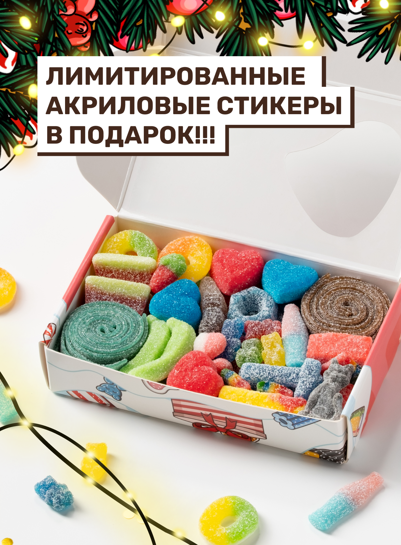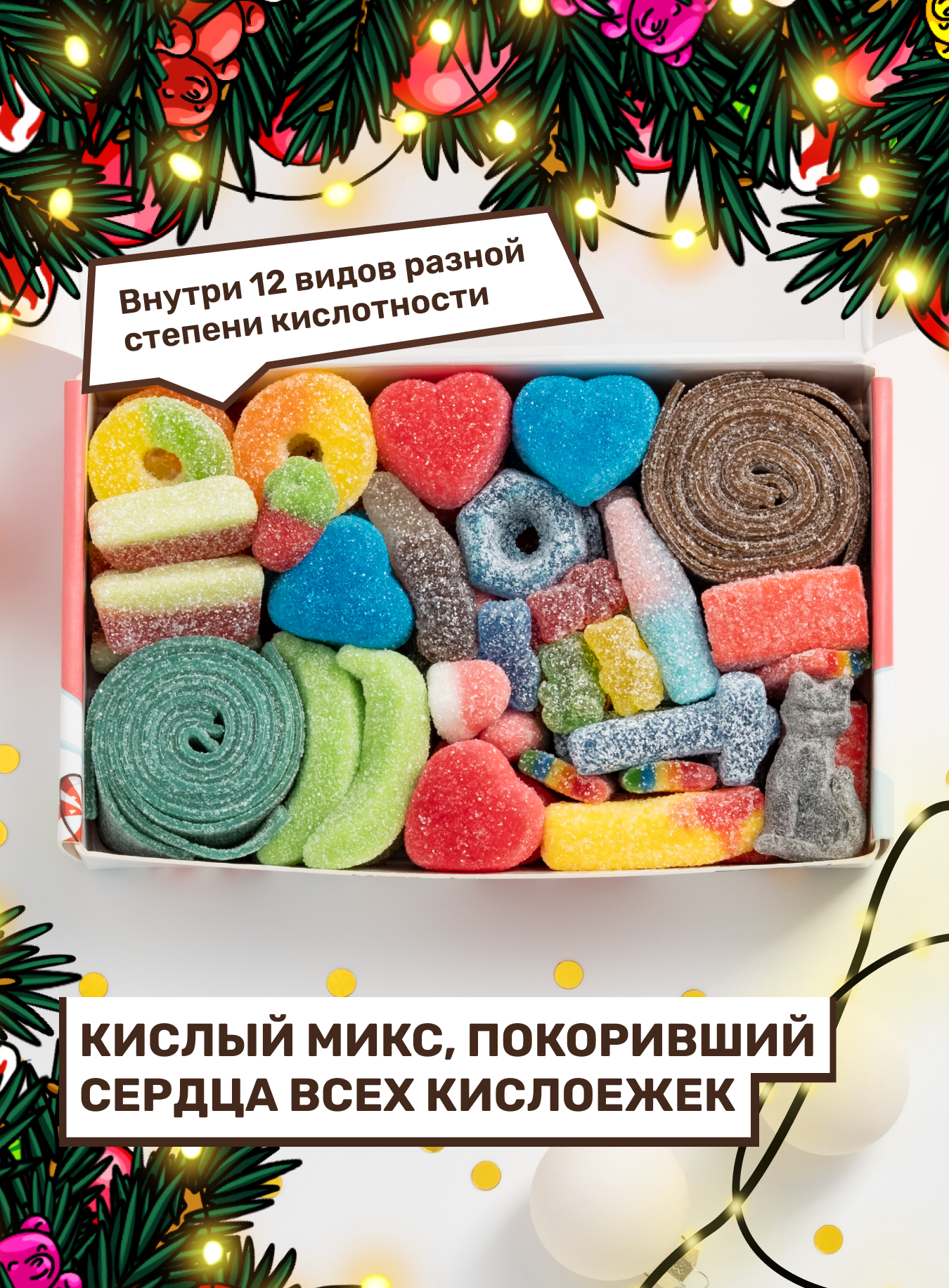 Купить Жевательный мармелад кислый, вкусный подарок, ассорти разных вкусов, подарочный новогодний набор 500 грамм с доставкой по всей России.