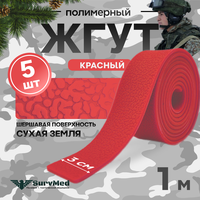 Жгут кровоостанавливающий, медицинский, тактический, шершавый Сухая Земля, красный, 1м, 5 шт