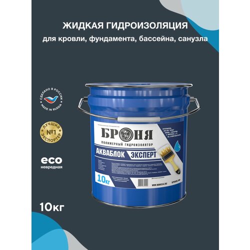 Жидкая гидроизоляция Броня Акваблок Эксперт — это универсальный гидроизоляционный материал на каучуковой основе и растворителе, который предназначен как для наружных, так и для внутренних работ. Это современное, сверхтонкое, легкое, невредное, негорючее гидроизоляционное покрытие с долгим сроком службы, которое обладает отличной адгезией, обеспечивающей крепкое сцепление с поверхностью, на которую оно наносится. Полимерное гидроизоляционное покрытие напоминает густую краску, которая наносится кистью, валиком или аппаратами безвоздушного распыления на различные виды поверхности (металл, пластик, бетон, кирпич, силикатный кирпич, кирпичная кладка, дерево, дсп, мдф, цемент, шпатлевка, штукатурка, камень, гипс, газосиликат, гипсокартон, гипсоволокнистый лист, пеногазобетон, полистиролбетон и др.), нуждающиеся в ремонте либо дополнительной защите от влаги. Этим материалом можно ремонтировать старую гидроизоляцию и старую рулонную кровлю без демонтажа. После полного высыхания и полимеризации материала образуется прочное эластичное бесшовное гидроизоляционное покрытие, способное заменить любые традиционные гидроизоляционные материалы. Жидкой гидроизоляцией "Броня АкваБлок Эксперт" можно гидроизолировать фундамент, подвалы, стены, полы, кровлю, межпанельные швы и т.д. Жидкую гидроизоляцию "Броня АкваБлок Эксперт" можно использовать как для создания прочного бесшовного изоляционного покрытия на больших площадях, так и для гидроизоляции стыков, швов, и различных трещин с последующим оклеиванием гидроизолированных поверхностей плиткой, панелями и прочими декоративными материалами. Благодаря своей жидкой текстуре мастика заполняет любые, даже самые мельчайшие пустоты. Гидроизоляция защищает поверхности от разрушительного негативного воздействия воды или скопившейся на поверхности влаги. Гидроизоляционная краска не выделяет вредных веществ, не растрескивается и не интересна насекомым и грызунам. Жидкая изоляция Броня Акваблок Эксперт применяется в строительстве: гидроизоляция кровли, санузла, ванных комнат, фундамента, террас, подвалов, бассейнов, колодцев, наносится под стяжку. Жидкая резина обладает виброгасящими свойствами. Гидроизоляционный материал производится с группой горючести Г1 (не поддерживает горение). Обмазочная мастика применяется в промышленности: гидроизоляция цехов, ангаров, промышленных помещений; оборудования; цистерн, емкостей и резервуаров; контейнеров; транспорта. Жидкая изоляция отражает ультрафиолетовые лучи и защищает от агрессивных факторов окружающей среды: от дождя, влажности, морского воздуха, града, снега и перепадов температур; защищает от коррозии; обладает антисептическими свойствами. Материалу не страшны морозы, его наносить в мороз до - 350. После полного высыхания образуется прочное эластичное бесшовное гидроизоляционное покрытие, способное заменить любые традиционные гидроизоляционные материалы. Расход материала 1,5 кг на 1 м2 в два слоя, общей толщиной 1 мм. Производится в таре 10кг и 20кг. Подробную информацию о применении жидких теплоизоляционных и гидроизоляционных покрытий Броня Вы можете уточнить у производителя.