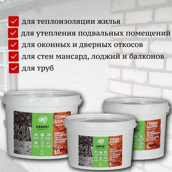 Жидкая керамическая теплоизоляция (стандарт) TermoGuard - инновационный лакокрасочный материал, предназначенный для утепления помещений, борьбы с промерзанием и конденсатом.