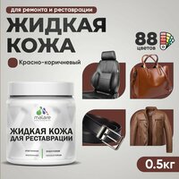 Жидкая кожа для ремонта и реставрации салона автомобиля, мебели, обуви и одежды, быстросохнущая без запаха, полуглянцевая, красно-коричневый, 0.5 кг