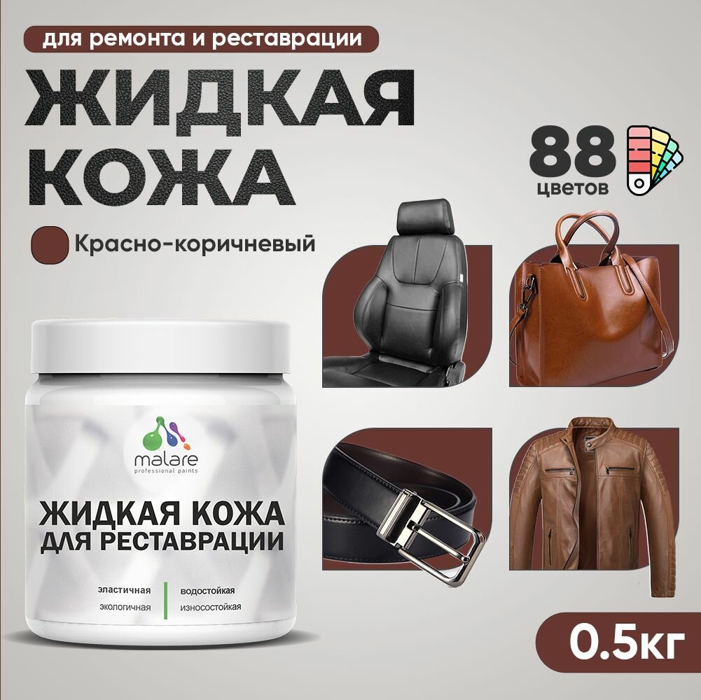 Жидкая кожа для ремонта и реставрации салона автомобиля, мебели, обуви и одежды, быстросохнущая без запаха, полуглянцевая, красно-коричневый, 0.5 кг: сравнение цен, характеристики, фото, актуальное наличие и цены.