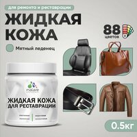 Жидкая кожа для ремонта и реставрации салона автомобиля, мебели, обуви и одежды, быстросохнущая без запаха, полуглянцевая, мятный леденец, 0.5 кг