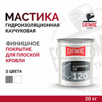 Купить Гидроизоляция для плоской крыши ELASTOMERIC 120, мастика гидроизоляционная однокомпонентная (жидкая резина для кровли) финишный слой, белый, 20кг с доставкой по всей России.
