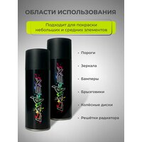 Larex в аэрозольных баллончиках идеально подходит для покраски небольших и средних элементов: колесных дисков, решеток радиатора, бамперов, зеркал и прочих элементов кузова автомобиля.