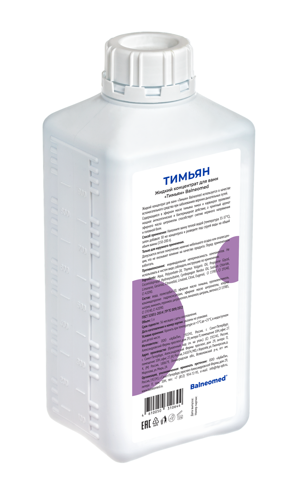 Жидкий концентрат для ванн «Тимьян» Balneomed 1000 мл.: сравнение цен, характеристики, фото, актуальное наличие и цены.