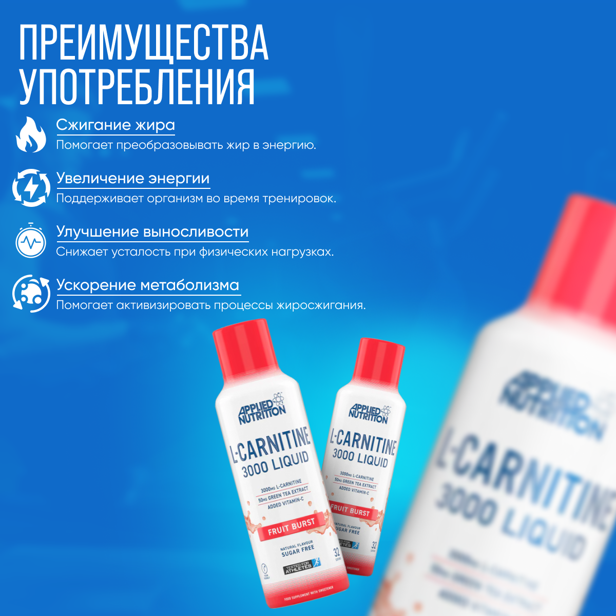 Жиросжигатель Л-карнитин, Applied Nutrition L-CARNITINE LIQUID 3000 480ml (FRUIT BURST): сравнение цен, характеристики, фото, актуальное наличие и цены.