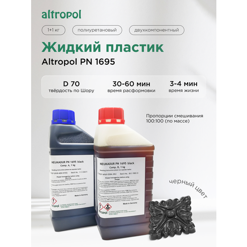 Жидкий двухкомпонентный полиуретан PN 1695 быстрой полимеризации, уже окрашенный в черный цвет. Этот пластик подходит для моделизма, создания мебельного и интерьерного декора, макетирования, сувенирной продукции методом заливки в формы из силикона или эластичного полиуретана.