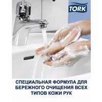 Жидкое мыло Tork мягкое с цветочным ароматом подходит для разных типов кожи. Tork жидкое мыло мягкое содержит ряд экстрактов, которые стимулируют обновление и восстановление кожи, способствуют её питанию, увлажнению и смягчению . ПАВ, используемые в составе продукта, оказывают бережное очищающее действие во время мытья рук.