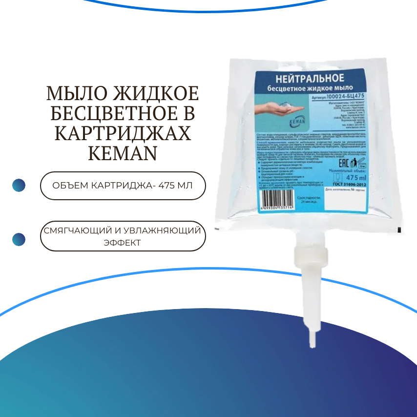 Купить KEMAN Мыло жидкое в картридже S2 100024-БЦ475 для диспенсеров, 475 мл. — 6 штук с доставкой по всей России.