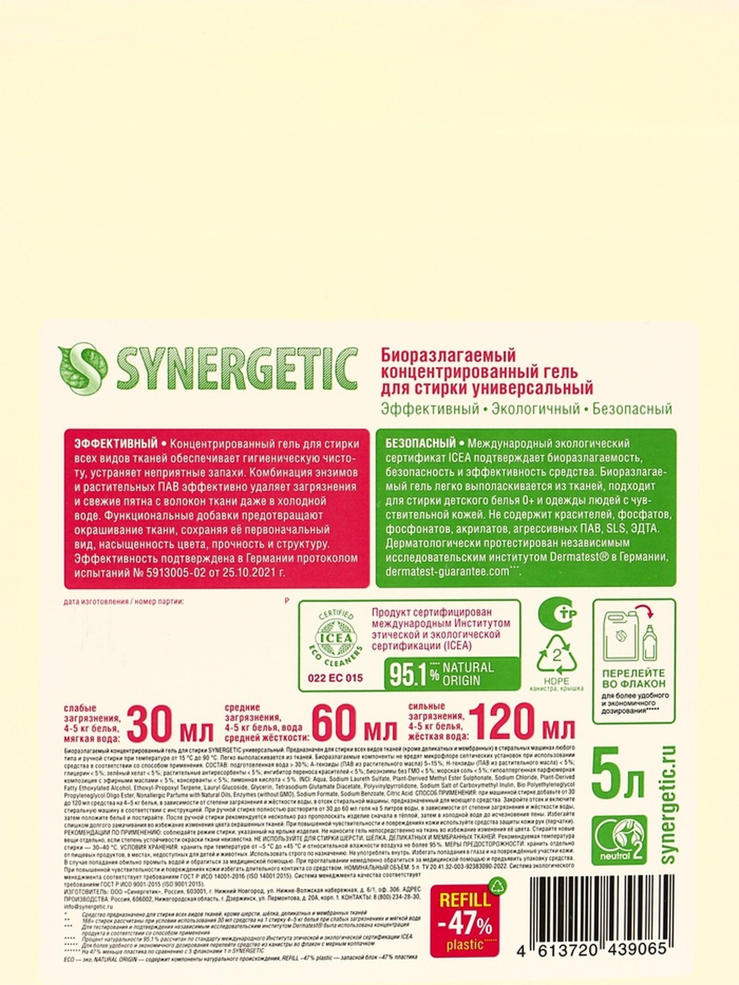 Купить Жидкое средство для стирки Synergetic, гель, универсальное, гипоаллергенное, 5 л с доставкой по всей России. Жидкое средство для стирки Synergetic, гель, универсальное, гипоаллергенное, 5 л: сравнение цен, характеристики, фото, актуальное наличие и цены.