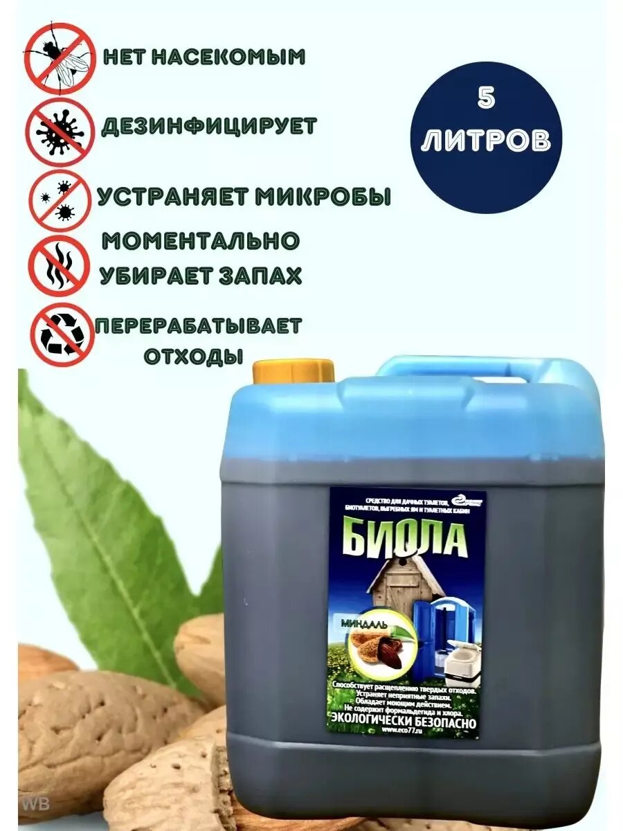 Биола 5 литров - Ваш надежный союзник в борьбе с неприятными запахами и загрязнениями в дачном туалете, выгребных ямах и септиках. Наша концентрированная жидкость для биотуалета обеспечивает максимальную эффективность и комфорт в использовании. Антибактериальный ликвидатор запахов - это многофункциональный клининг концентрат, который позволяет решить несколько проблем одновременно. Он эффективно устраняет неприятные запахи предотвращает размножение вредных бактерий и насекомых. Септическая жидкость для выгребных ям содержит специальные компоненты, способствующие биоразложению органических отходов. Это позволяет избежать неприятного запаха и предотвращает образование засоров в системе канализации. Биола средство для дачного туалета обладает приятным ароматом миндаля, который создает ощущение свежести и чистоты. Вы сможете насладиться комфортным использованием туалета на Вашей даче в любое время года. Наше средство от запаха и загрязнений также подходит для использования в уличных туалетах, компостных ямах и канализационных колодцах. Оно эффективно устраняет неприятные запахи и обеспечивает гигиеническую чистоту в любых условиях. Биола - это антибактериальный дезинфицирующий концентрат, который обеспечивает максимальную защиту от вредных микроорганизмов. Вы можете быть уверены в безопасности и гигиене при использовании нашего продукта. Используйте Биола - эффективное средство от запаха и загрязнений, которое поможет вам поддерживать чистоту и комфорт в вашем дачном туалете, выгребных ямах и септиках. Наслаждайтесь свежестью и безопасностью с Биола! Срок годности изделия - 3 года. Упаковка – канистра 5 литров.