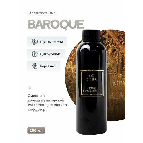 Наполнитель диффузора для дома, 200 мл, аромат BAROQUE входящий в ARHITECT LINE. Линия вдохновлена красотой и гармонией архитектурных шедевров. Ароматы отражают ощущения от архитектурного стиля. BAROQUE - аромат, вдохновлен эпохой барокко, живописной и наполненной художественными деталями. Стиль отражал идеологию католицизма: экспрессивность, мистицизм, иллюзорность. Яркие примеры: церковь Иль-Джезу в Ватикане, фонтан Треви в Риме, Петергоф и др. Главные ноты - пряности и цитрусы, создают уникальное сочетание, напоминающее о роскошных дворцах великих королевских семей Европы. Пряность добавляет глубину и тепло, создавая ощущение комфорта и уюта. Цитрусы дают нотки свежести и легкости. Серая амбра дополняет композицию, придавая аромату загадочности и таинственности. BAROQUE - манящий унисекс из пряностей, цитрусовых, древесины и яркой, щекочущей рецепторы подложкой из серой амбры. Чувственный, но при этой строгий. Аромат подходит решительным людям с утонченным вкусом. Ольфакторная группа: древесные, цитрусовые, пряные. Верхние ноты: чёрный перец, розовый перец; бергамот. Ноты сердца: герань, лаванда, элеми. Базовые ноты: ветивер, пачули, кедр, лабданум, серая амбра. Рефилл - это наполнитель для диффузоров и ароматизаторов. Не покупайте новый аромадиффузор, промойте тот что есть и наполните его снова. Рефилл дешевле на 40%, чем новый ароматизатор. Сэкономите, аромат и качество останутся с вами надолго. Концентрация Parfum, т. е. формула содержит 45% отдушки. В составе нет спирта, поэтому объема 200 мл хватит на 8-10 месяцев использования с хлопковыми или фибровыми ароматическими палочками. Для основы используем разбавитель Augeo, привозим из Австралии, это самый качественный и безвредный вариант, дает высокую летучесть отдушки аромата, за счет чего аромат чувствуется. Интенсивность сохраняется на протяжении всего срока годности - 2 года.