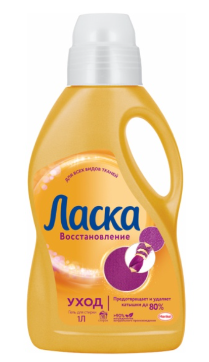 Гель для стирки «Ласка. Уход и Восстановление», жидкое средство для стирки 1л (16 стирок) создано специально для тканей, склонных к образованию катышков. Благодаря формуле Fibrex-tech (Фибрекс-тек) жидкое средство для стирки «Ласка» не только защищает новую одежду от образования катышков и ворсинок с первой стирки, но и обладает эффектом восстановления уже не новой ткани, поэтому вещи дольше выглядят как новые.