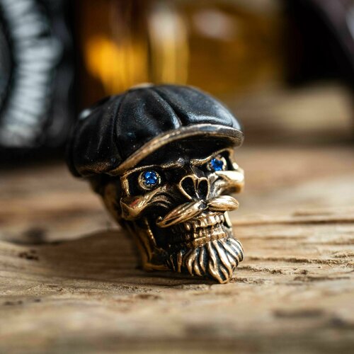 Череп в кепке «восьмиклинке». Камни в глазах наполняют персонаж жизнью.