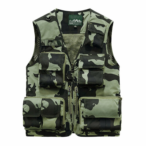 Этот весенний-осенний камуфляжный мужской жилет - отличный выбор для любителей активного отдыха на природе. Он выполнен в трендовом цвете хаки, который прекрасно маскирует на фоне окружающей среды.