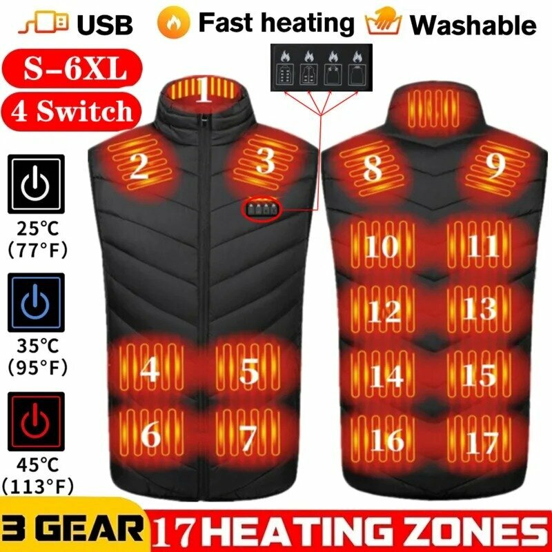 Купить Жилет мужской с подогревом утепленный для рыбалки, охоты 17 зон подгрева 44-46 р-р черный с доставкой по всей России.