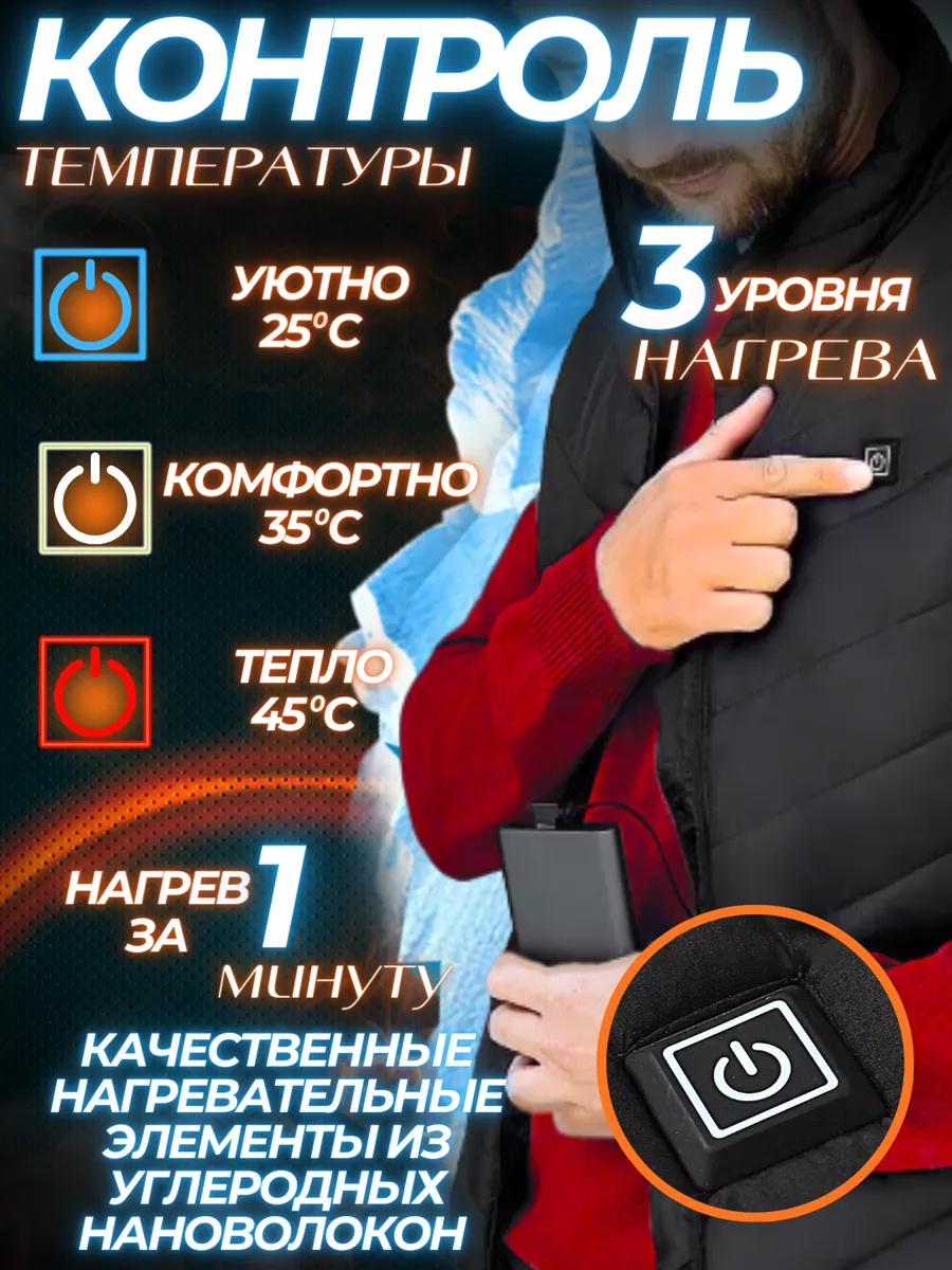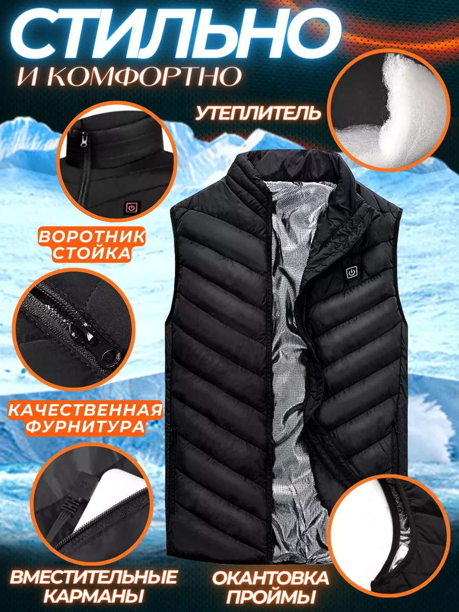Купить Жилет мужской с подогревом утепленный для рыбалки, охоты 9 зон подгрева 42-44 р-р с доставкой по всей России.