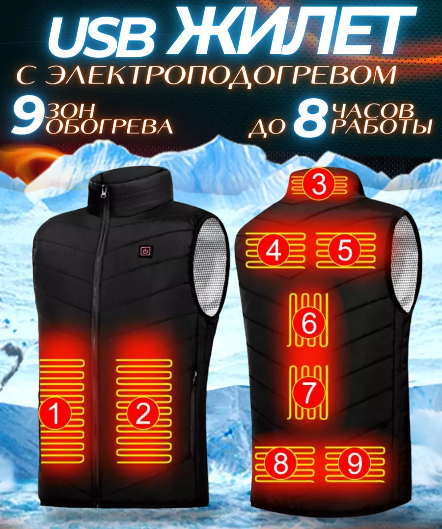 Жилет мужской с подогревом утепленный для рыбалки, охоты 9 зон подгрева 42-44 р-р: сравнение цен, характеристики, фото, актуальное наличие и цены.