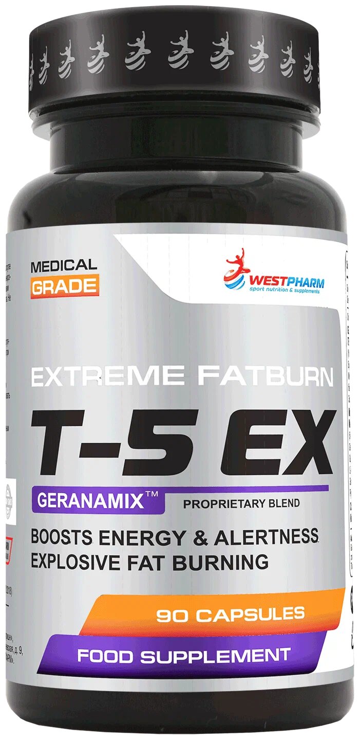 T-5 EX повышает эффективность любой тренировочной программы, нацеленной на комплексное снижение веса, сжигание жира в проблемных зонах или шлифовку мышечного рельефа. Компоненты препарата обладают синергетическим действием, что позволяет добиться максимального физиологического отклика без негативного влияния на обмен веществ. Экстракты, входящие в состав T-5 EX - является мощными симпатомиметиками. Стимулируя адренорецепторы жировой ткани и поперечнополосатой мускулатуры, ускоряю метаболизм и форсирует липолиз. За счет мягкой психической стимуляции повышает работоспособность и продуктивность силовых и кардиотренировок.