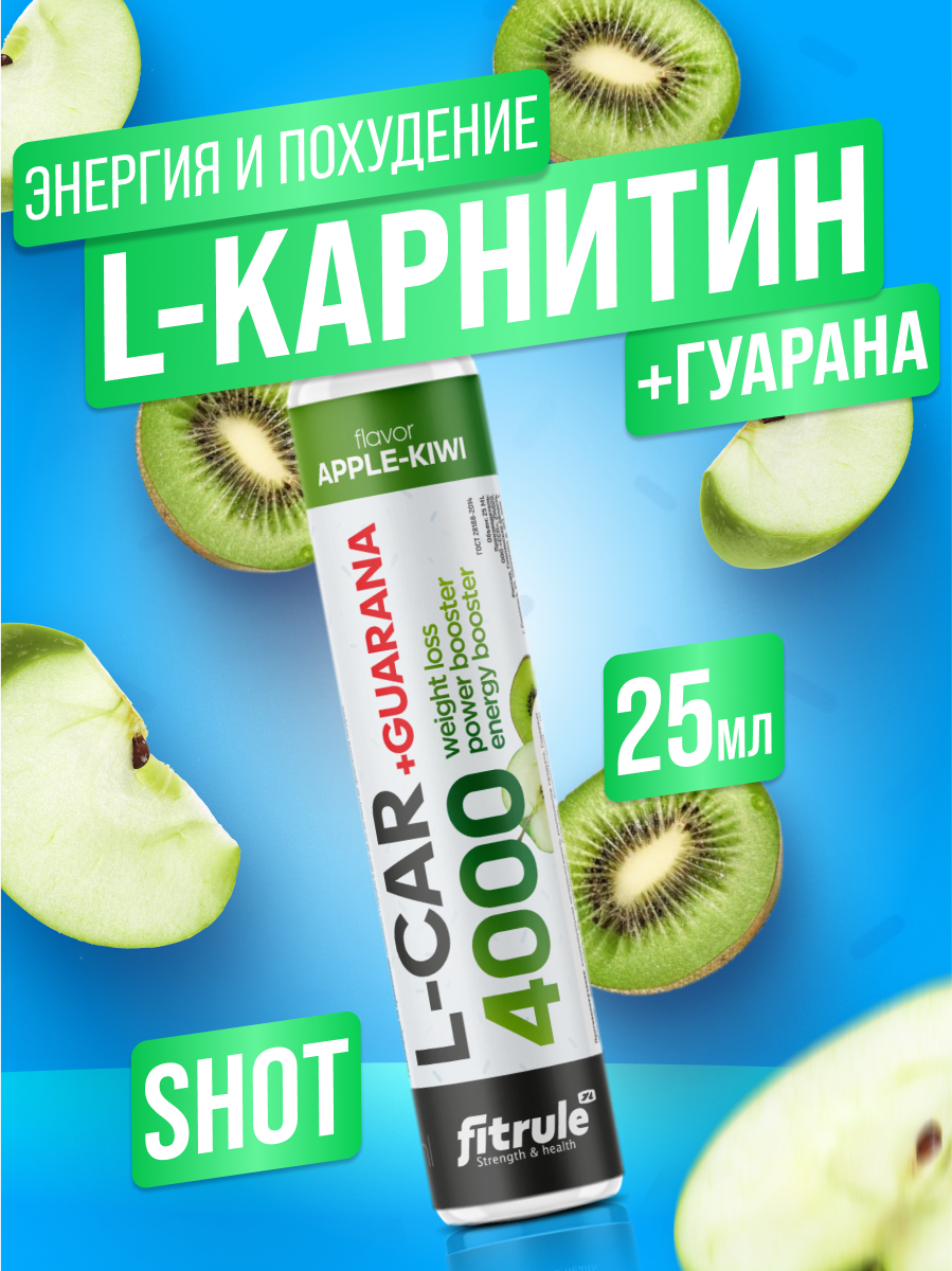 Жиросжигатель FitRule L-карнитин + Гуарана, 4000мг, 25мл, 20шт, ампулы, (Яблоко-Киви): сравнение цен, характеристики, фото, актуальное наличие и цены.