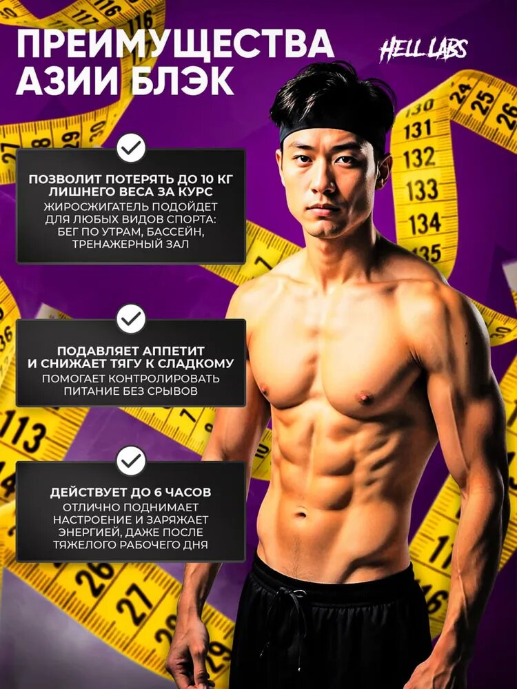 В целом, Hell Labs Asia Black 100 caps является отличным выбором для тех, кто ищет эффективный и удобный в использовании жиросжигатель.