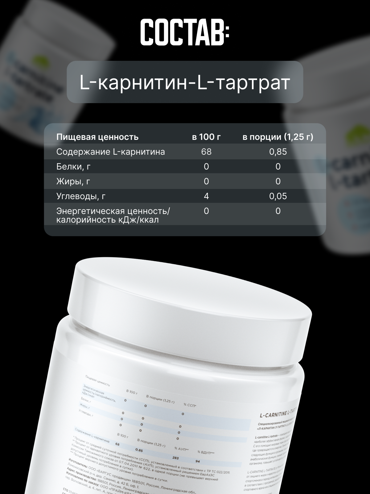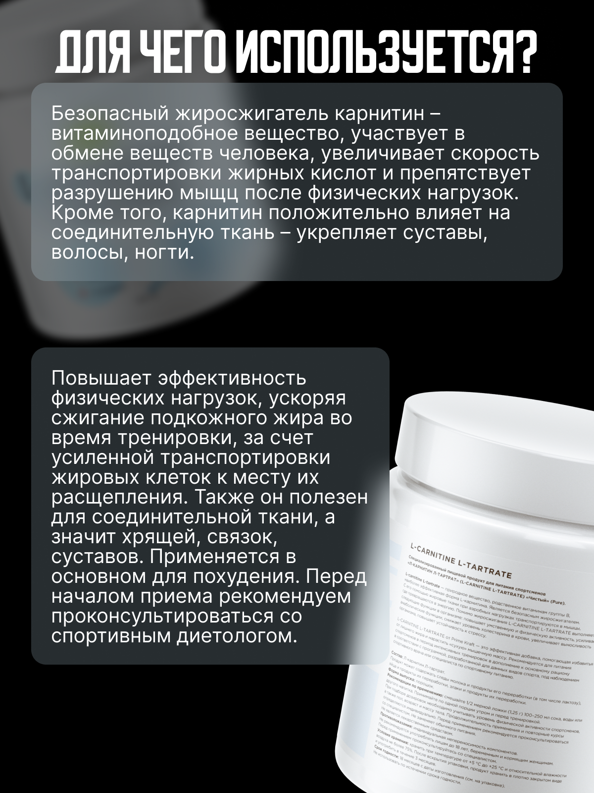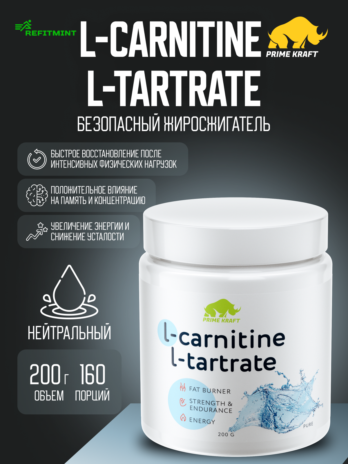 Жиросжигатель Л-Карнитин PRIMEKRAFT L-Carnitine L-Tartrate Чистый 200 г — 160 порций: сравнение цен, характеристики, фото, актуальное наличие и цены.