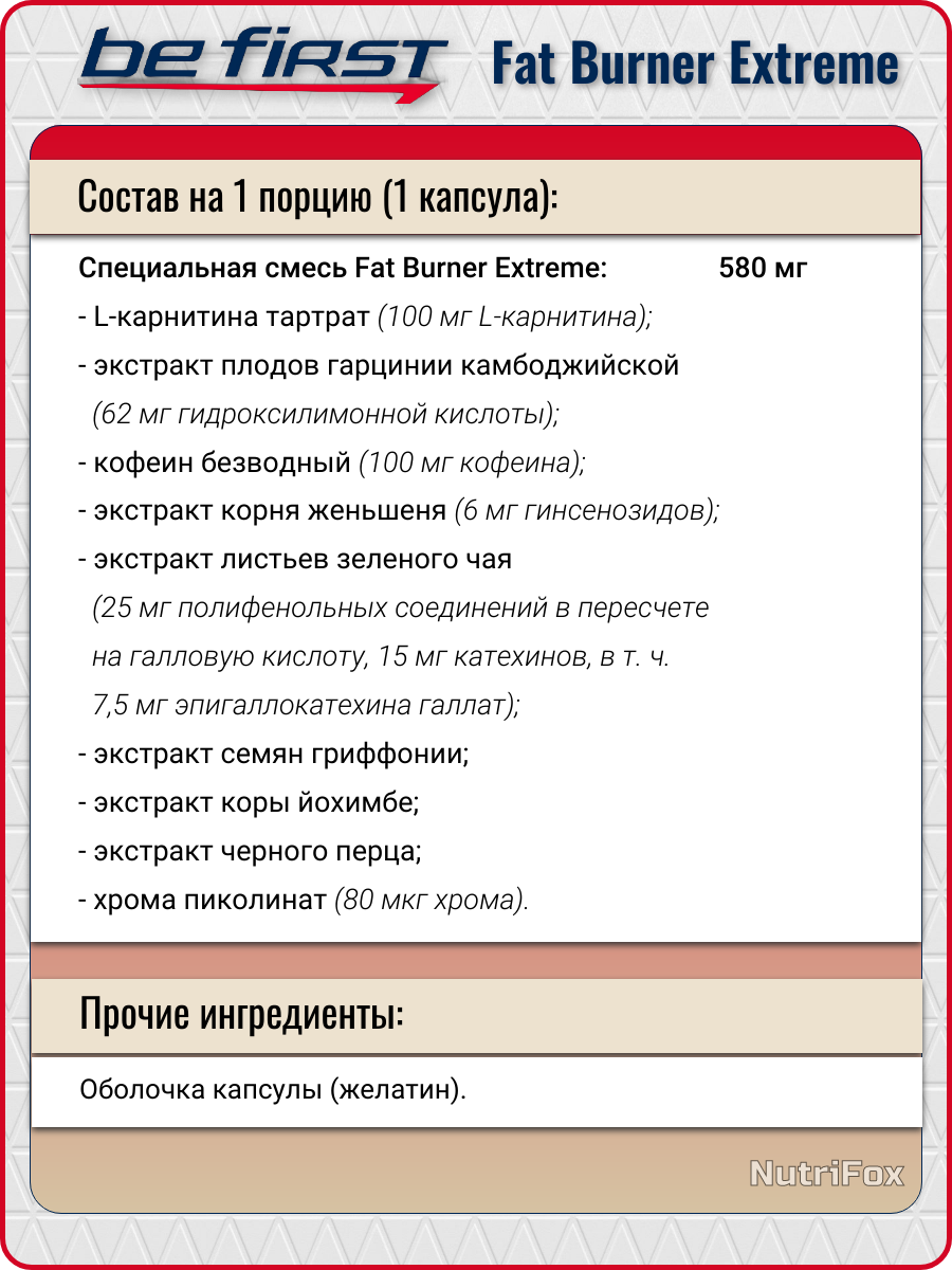 Жиросжигающий комплекс для похудения Be First Fat Burner Extreme, 90 капсул: сравнение цен, характеристики, фото, актуальное наличие и цены.
