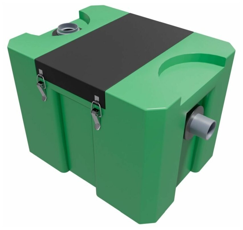Отсутствие запаха За счёт использования крышки с ребром жёсткости, которая герметизируется четырьмя металлическими замками на основном корпусе, мы исключили неприятные запахи. Сам же жироуловитель серии Универсал представляет собой цельнолитое изделие в виде герметичной ёмкости. Съёмная камера Благодаря съемной камере обслуживать жироуловитель становится значительно проще. Достаточно лишь извлечь камеру, очистить ее от жира и мусора и поставить обратно. Входящий патрубок сверху Еще одним преимуществом жироуловителя серии Универсал является расположение входящего патрубка в верхней части устройства, что позволяет подключить подводящую трубу напрямую к жироуловителю и экономит место под мойкой. Дополнительная камера Внутренний объем жироуловителя разделен на 2 камеры. Первой камерой является основной корпус. Съемная камера расположена в средней части жироуловителя, где скапливаются крупные частицы и жир. Крупные частицы спустя время оседают на дно, а частицы жира и масла поднимаются на поверхность из-за разницы удельных весов с водой, образуя масложировую пленку.