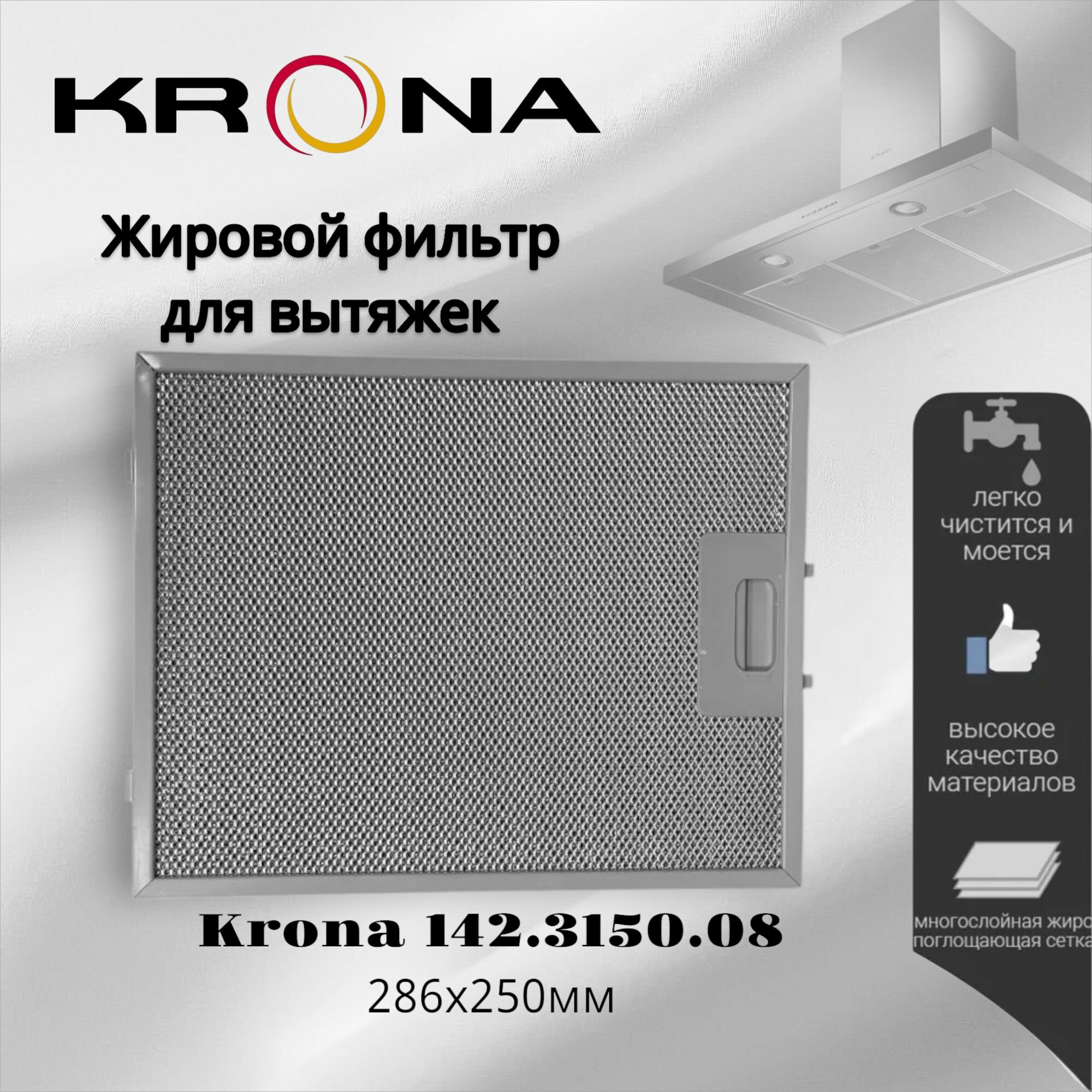 Жировой фильтр для вытяжек Krona 142.3150.08 286х250мм, жиропоглощающий - представляет собой многослойный алюминиевый жировой фильтр с сотами. Качественный металлический фильтр эффективно поглощает частицы грязи, защищая стены и потолок от жира и других загрязнений.