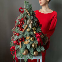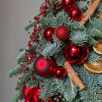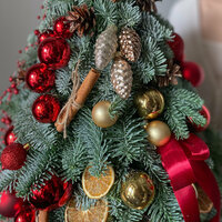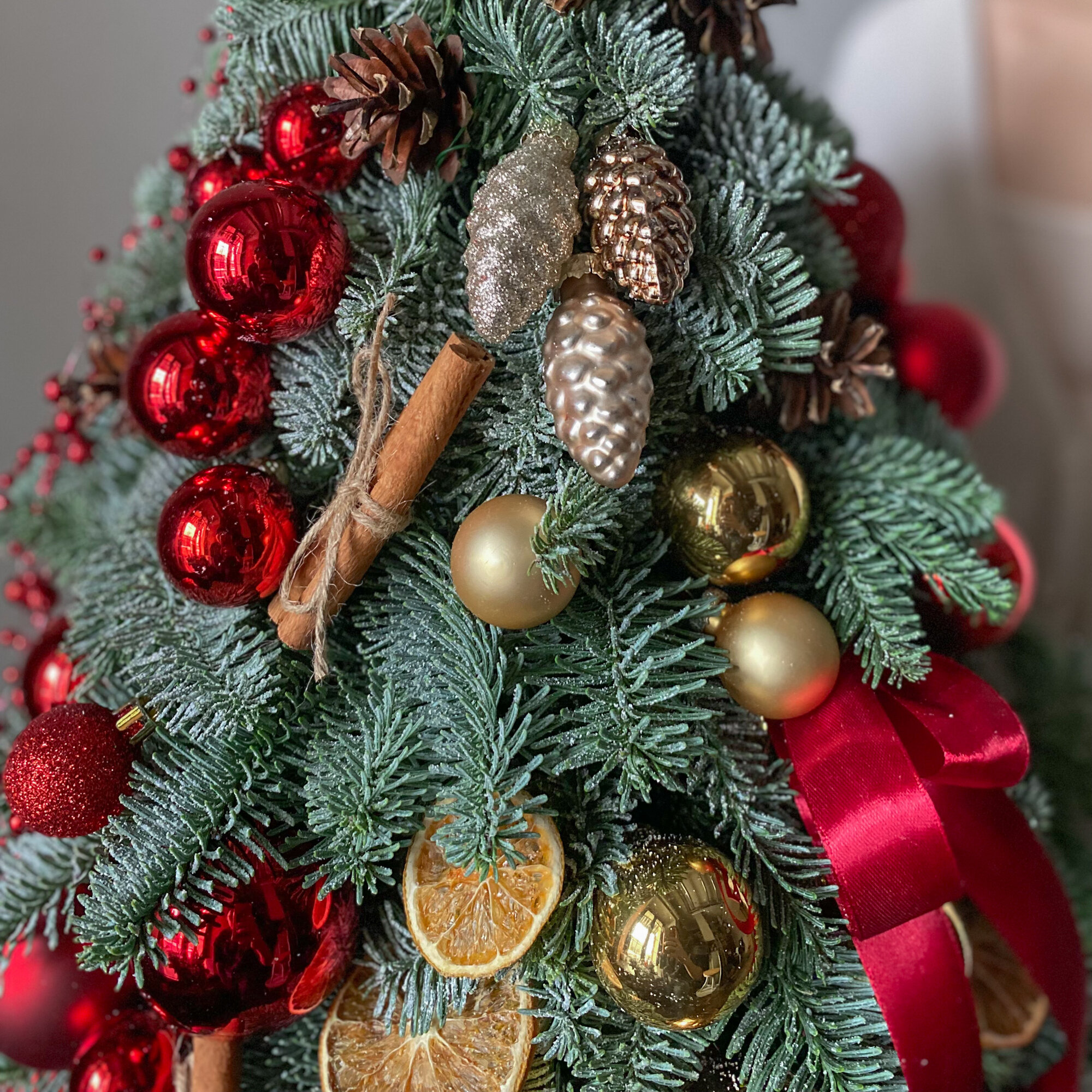 Купить Живая новогодняя елочка из датской пихты (Нобилис) в авторском оформлении. Красно золотая с доставкой по всей России.