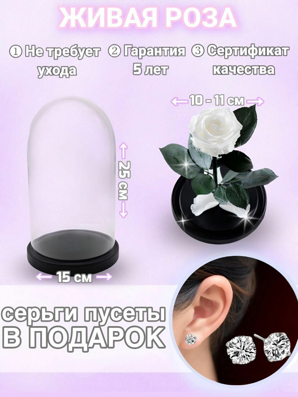 Роза в колбе "TheRoseDome Премиум Хит", стабилизированная, белая, 15х23 см