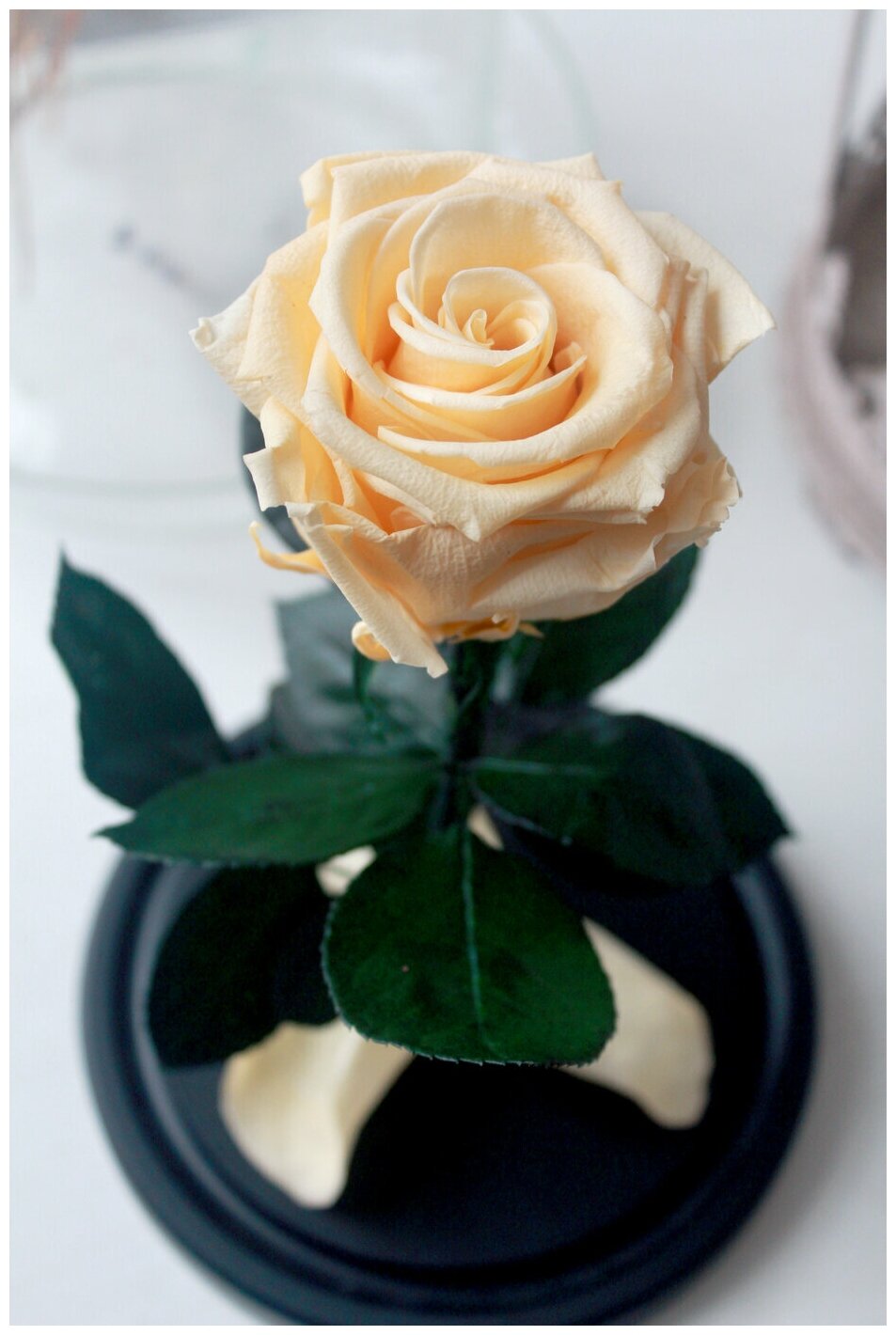 -живая роза из Эквадора, диаметр бутона 7-8 см; -стеклянная колба, размер 27х15 см; -закаленное стекло по технологии Flexity защитит вашу розу от повреждений; -подставка из натуральной сосны.