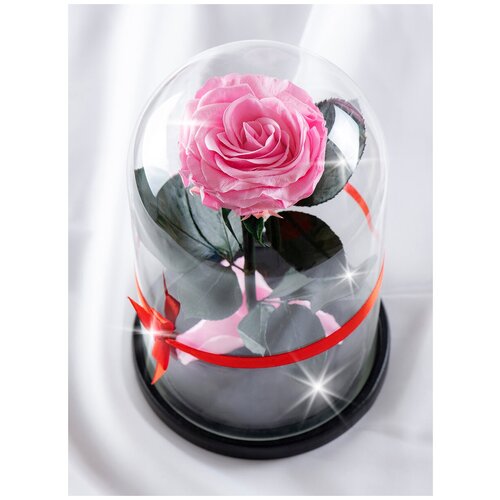 -живая роза из Эквадора, диаметр бутона 7-8 см; -стеклянная колба, размер 27х15 см; -закаленное стекло по технологии Flexity защитит вашу розу от повреждений; -подставка из натуральной сосны.