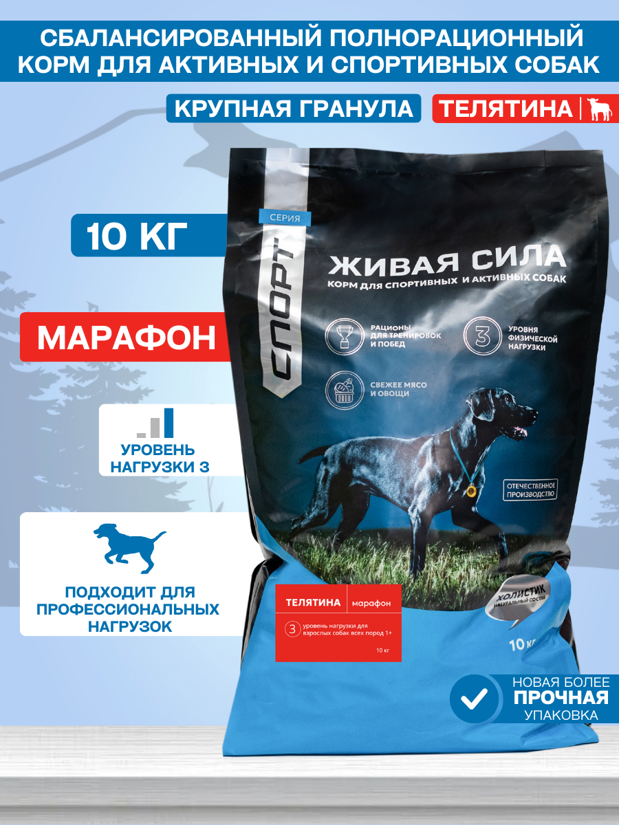 Живая сила Спорт, Марафон корм для собак всех пород с высокими нагрузками с телятиной и лососем, Крупная гранула (10 кг): сравнение цен, характеристики, фото, актуальное наличие и цены.