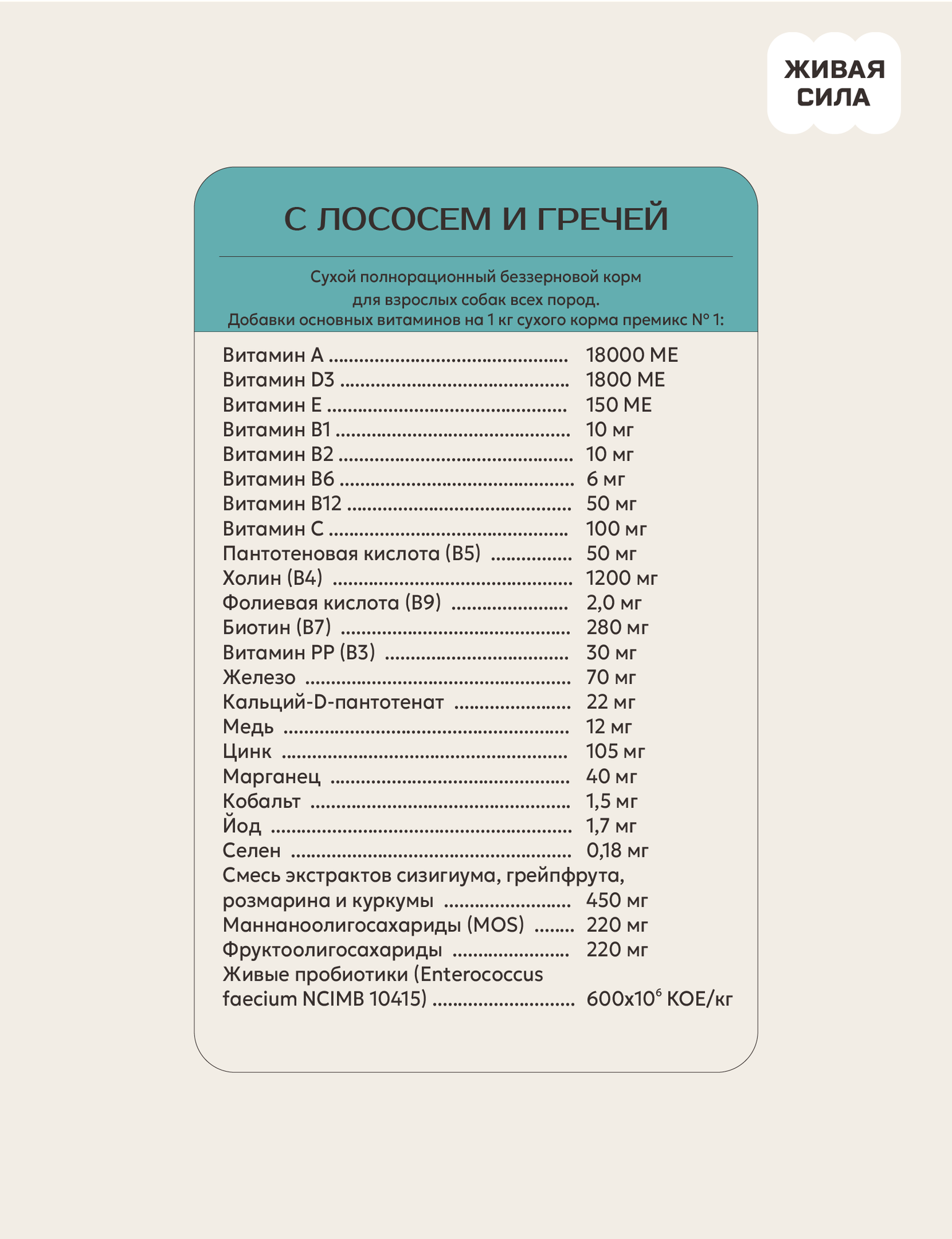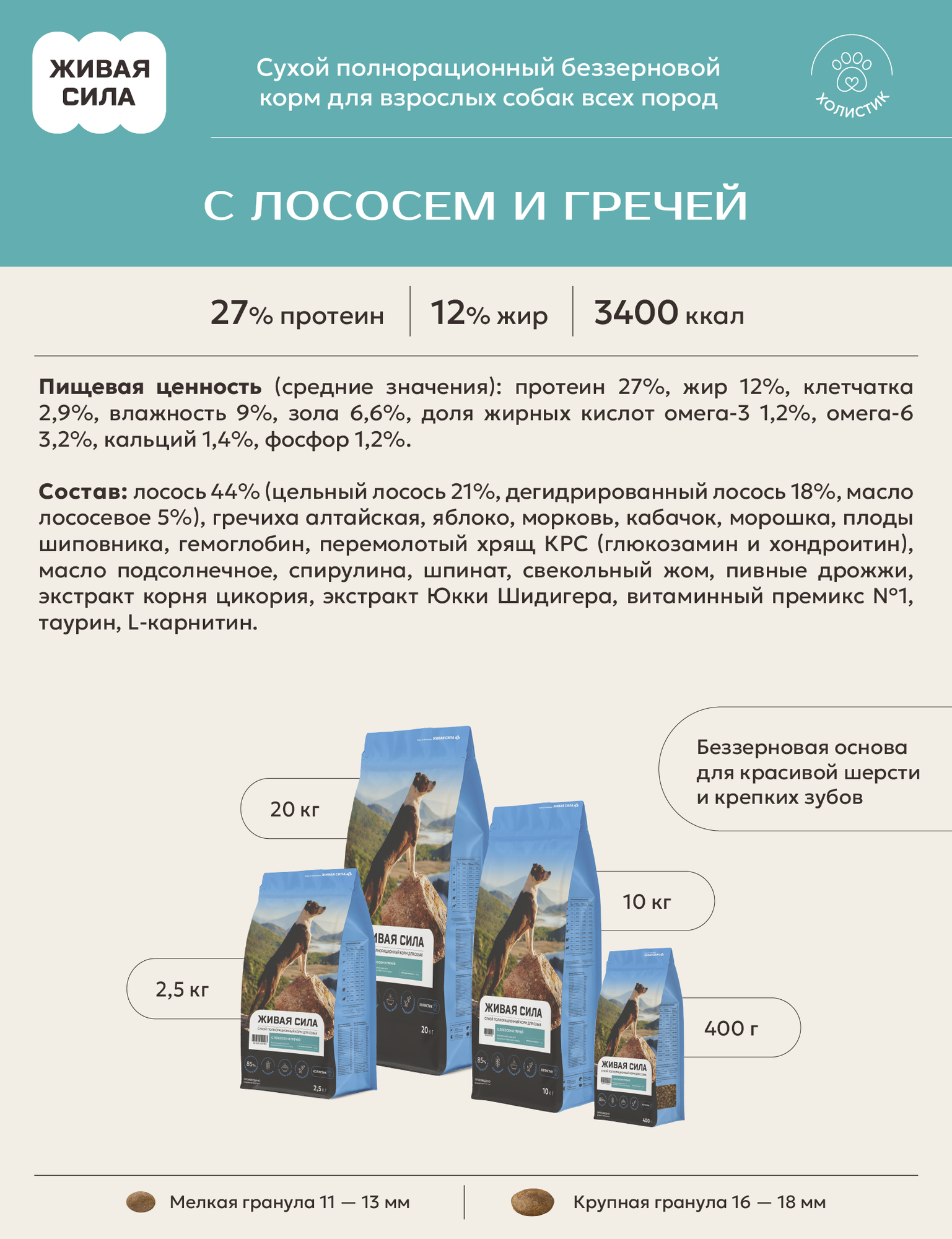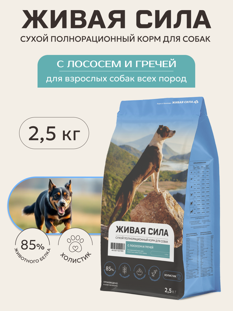 Купить Живая сила, корм сухой беззерновой для взрослых собак с 1 года с лососем и гречей, Крупная гранула (2,5 кг) с доставкой по всей России. Живая сила, корм сухой беззерновой для взрослых собак с 1 года с лососем и гречей, Крупная гранула (2,5 кг): сравнение цен, характеристики, фото, актуальное наличие и цены.