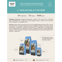 Живая Сила беззерновой корм с лососем и гречей, крупная гранула.
